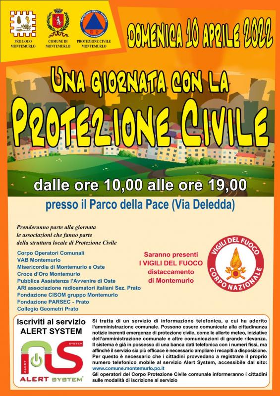 Nell'ambito di “Colori di primavera” si svolge un'altra interessante manifestazione “Una giornata con la protezione civile”, promossa dal sistema comunale di Protezione civile. Un'opportunità per conoscere da vicino tutte le associazioni che fanno parte della protezione civile comunale e il lavoro che portano avanti sul territorio. Oltre agli operatori comunali della protezione civile, infatti, saranno presenti con i propri mezzi la Vab Montemurlo, la Misericordia Montemurlo, l'Ari associazione radioamatori italiani sezione di Prato, la fondazione Cisom di Montemurlo, la Fondazione Parsec e il collegio geometri di Prato e i vigili del fuoco del distaccamento di Montemurlo.