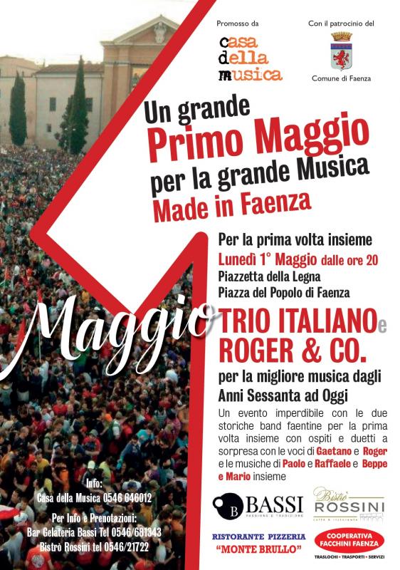E’ stata presentata oggi a Faenza la prima edizione del Primo Maggio in Musica Made in Faenza che vede per la prima volta insieme il Trio Italiano che festeggia i 25 anni di attivita’ e Roger & Co. che va verso la maggiore eta’ coi suo i 18 anni di attivita’ musicale.