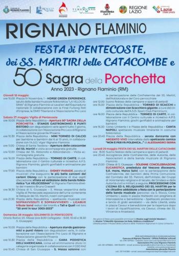 A Rignano Flaminio in provincia di Roma si svolge nei giorni dal 19 al 29 maggio 2023 lanuova edizione della Festa di Pentecoste e 50 sagra della porchetta dirignano flaminio