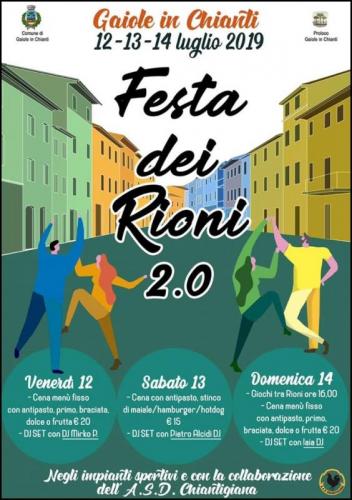 Rioni in festa a Gaiole da Venerdì 12 a Domenica 14 Luglio. La Festa dei Rioni, dopo il successo della passata edizione, torna anche quest’anno con un ricco fine settimana di iniziative. Giochi di piazza, degustazione di vini e prodotti tipici locali, prodotti dell'artigianato e musica e balli per tutti.