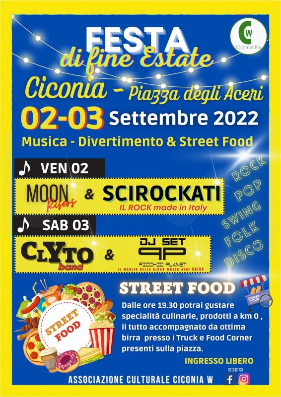 VENERDI 02 e SABATO 03 SETTEMBRE VI aspettiamo numerosi a Ciconia in Piazza degli Aceri per due serate all'insegna del divertimento con ottima musica e ottimo cibo.