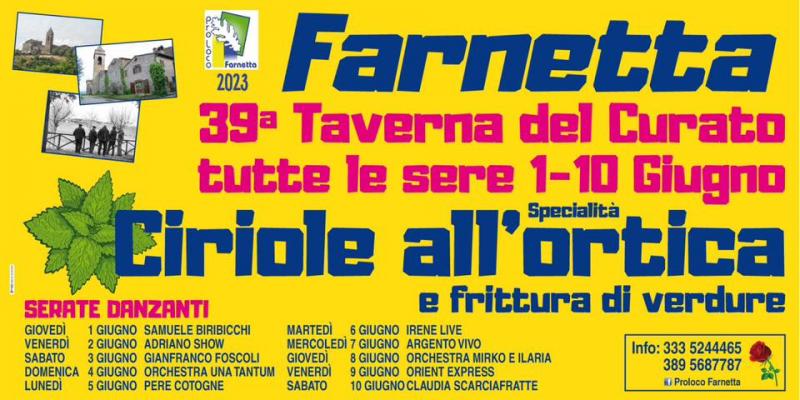 La Festa di Santa Rita a Farnetta e Sagra delle Ciriole all'Ortica alla Taverna del Curato si svolgono dal 1 al 10 giugno 2023 a Farnetta di Montecastrilli (TR).