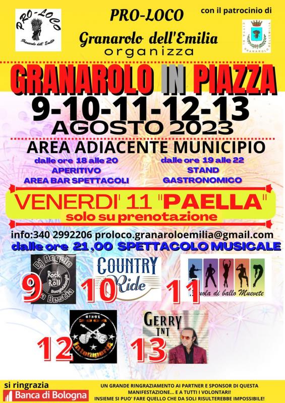 Appuntamento a Granarolo dell'Emilia per la tradizionale GRANAROLO IN PIAZZA organizzata dalla Pro-Loco!