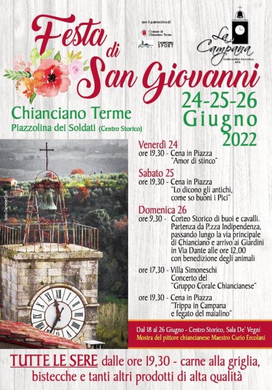 Festa di San Giovanni, Santo Patrono di Chianciano Terme, dal 24 al 26 giugno 2022.