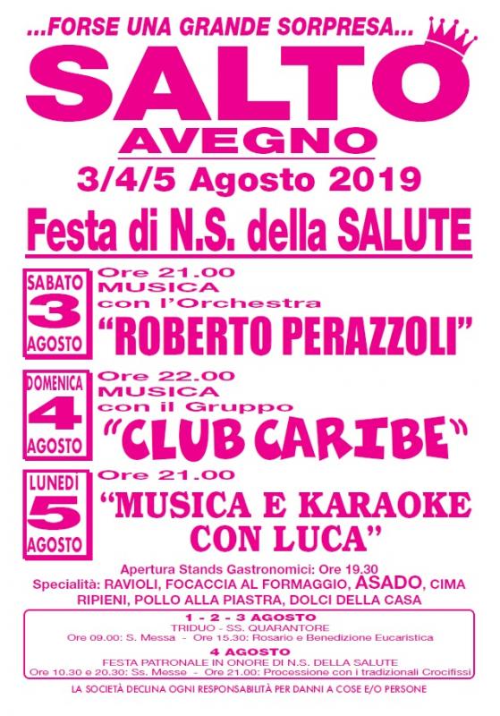 Sabato 3, Domenica 4 e Lunedì 5 Agosto 2019
