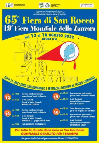 19° Festa Mondiale Della Zanzara a Berra (FE) e 65° Fiera di San Rocco dal 13 al 16 agosto 2022.