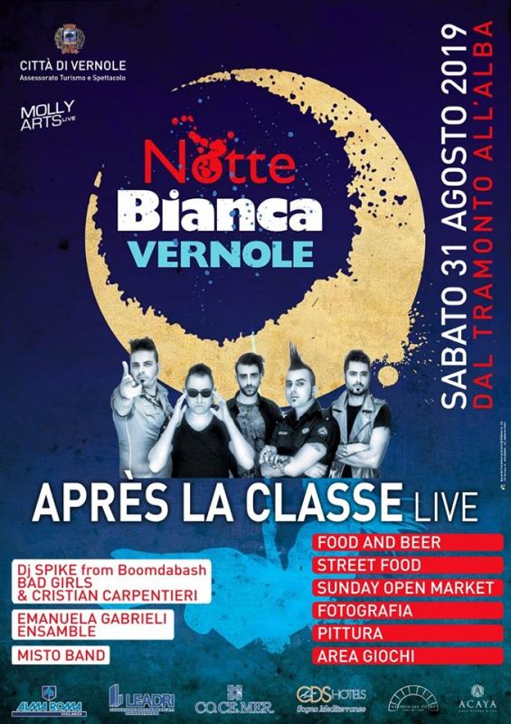 Dalle prime ore della sera, fine a notte fonda, in ogni angolo si renderà piacevole la permanenza dei visitatori con iniziative, attività e performance artistiche di diverso genere, mentre gli Aprés la Classe, ospiti principali del cartellone, porteranno in Piazza Vittorio Veneto una tappa del loro Nada Contigo Tour, il loro nuovo spettacolo per l’estate 2019.