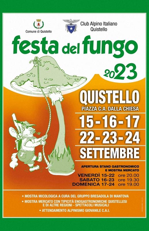 Alle porte dell'Autunno tona l'appuntamento con la Festa del Fungo a Quistello (MN) che quest'anno si svolge il 15, 16, 17 e 22, 23, 24 Settembre 2023.