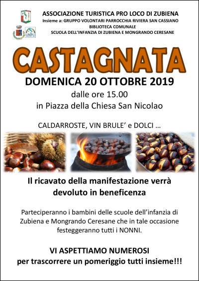 Domenica 20 Ottobre 2019 torna la Castagnata Benefica a Zubiena (BI), l'evento tradizionale che organizza la Pro Loco per omaggiare il frutto dei boschi.