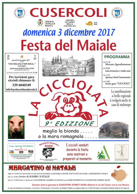 Domenica 3 dicembe 2017 a Cusercoli di Civitella di Romagna (FC): Festa del Maiale con la Cicciolata.