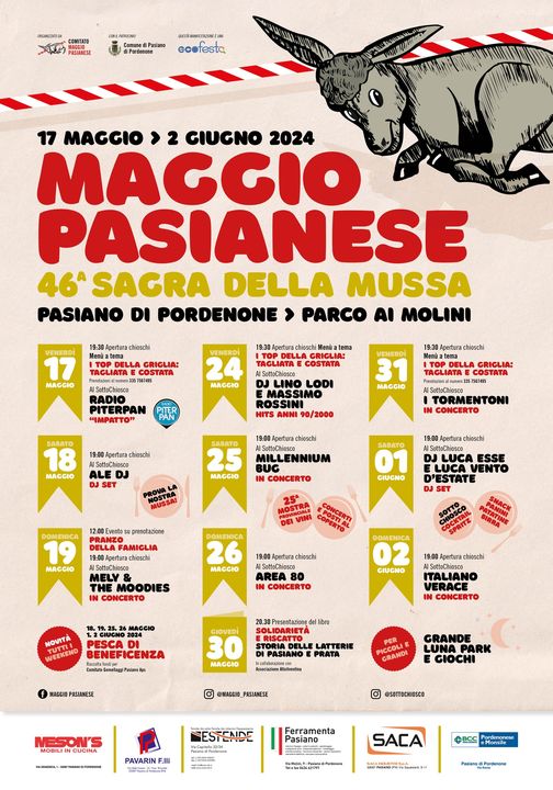 Diniego di responsabilià: le notizie riportate in questa pagina sono state fornite da Enti Pubblici e Privati e, organizzazione eventi e sagre, fiere. Suggeriamo di verificare date, orari e programmi che potrebbero variare, contattando le organizzazioni o visitando il sito ufficiale dell'evento.