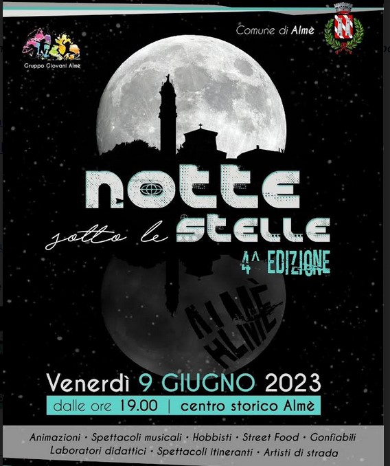 Il Comune di Almè, in collaborazione con il Gruppo Giovani del Comune, organizza questo ormai consueto evento annuale che si rivolge a famiglie, bambini, ragazzi e adulti a cui viene offerto un programma ricco di spettacoli ed eventi per ogni gusto e ogni interesse. Il centro storico del Paese diventa una grande area pedonale teatro di una festa estiva sotto le stelle.