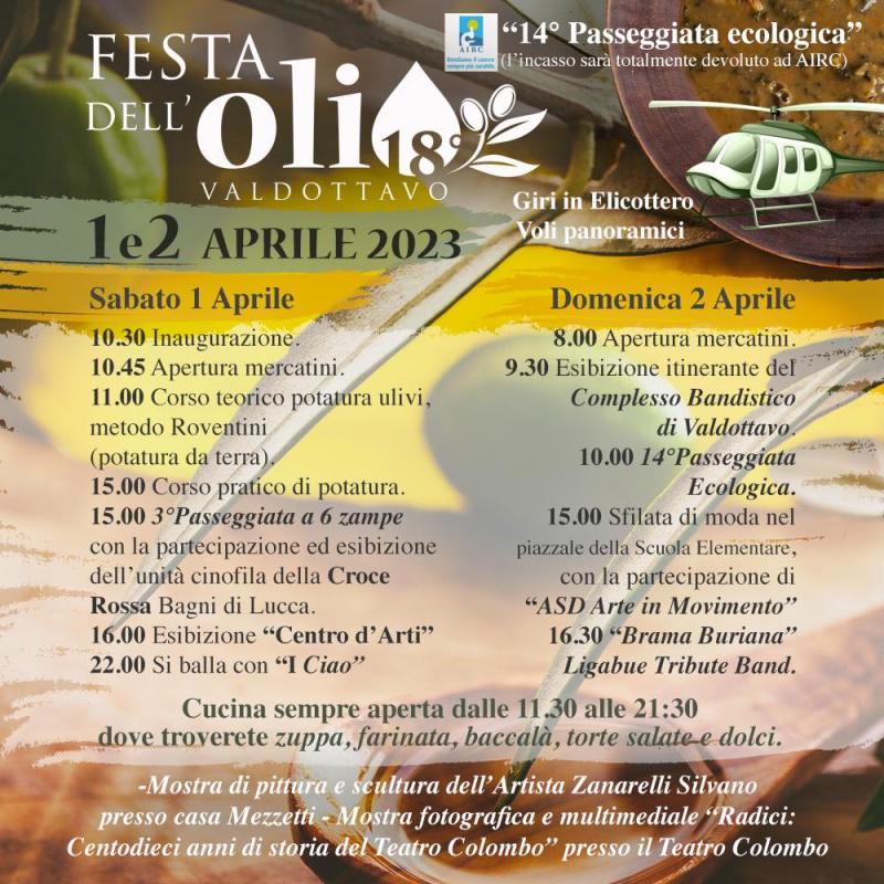 Festa dell'olio a Borgo a Mozzano 1 e 2 Aprile 2023, Con mercatini la tipica zuppa, concerti, la sfilata di moda, la passeggiata ecologia e quella a 4zampe
