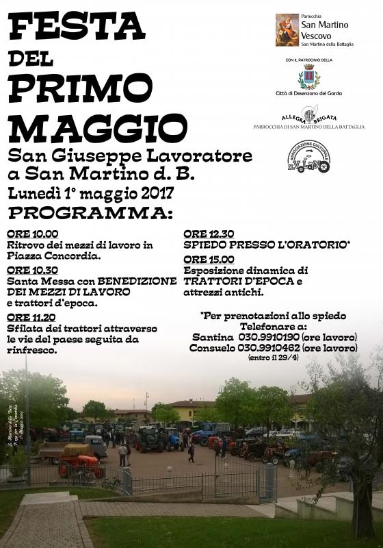 Lunedì 1° maggio 2017, ore 10.00, all'Oratorio S. Martino Vescovo di San Martino della Battaglia, Desenzano del Garda, si svolge la Festa Di S. Giuseppe Lavoratore con sfilata di trattori d’epoca.