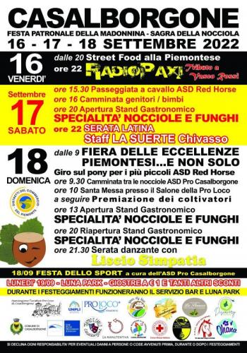 Dal 16 al 18 settembre 2022 a Casalborgone torna il gustoso appuntamento con la Sagra Della Nocciola che si svolge come sempre durante la Festa Patronale della Madonnina.