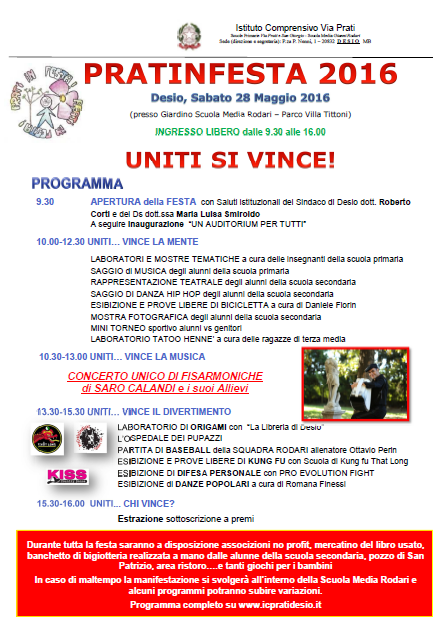 ORE 9,30 INAUGURAZIONE della Festa con la presenza del Sindaco Corti