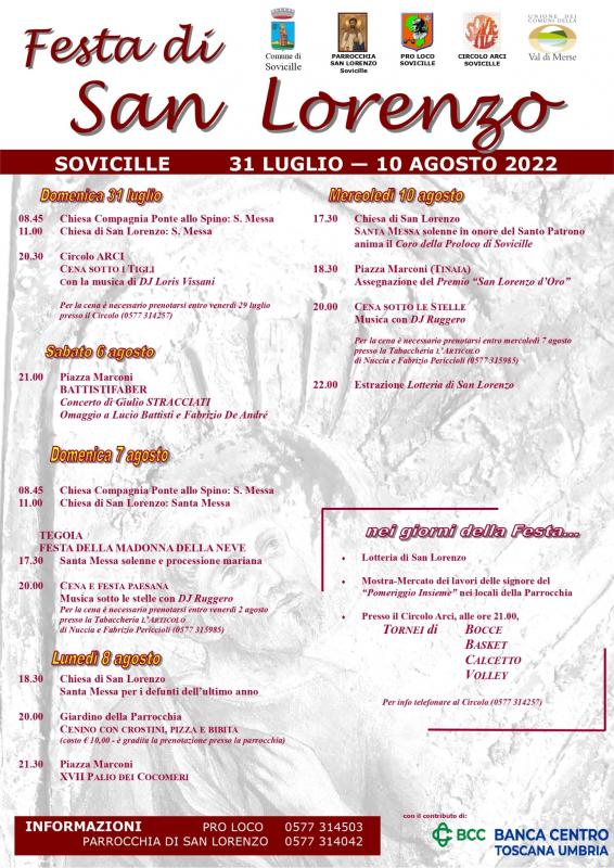 Festa di San Lorenzo a Sovicille (SI) si svolge dal 31 Luglio al 10 Agosto 2022
