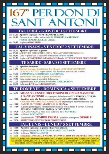 Perdon Di Sant Antoni a Lavoriano frazione del Comune di Mortegliano (Ud) giunto alla 164ma edizione si svolgera dal 1 al 5 Settembre 2022.