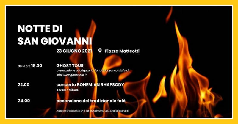 Ritorna, in presenza ed in sicurezza, il Ghost Tour (posti esauriti) - una visita guidata alla scoperta di vecchi e nuovi misteri per le vie e le piazze del Centro Antico Genovese - che precede l'accensione del tradizionale Falò di San Giovanni. Impreziosice la serata un concerto legato a "Bohemian Rhapsody", il classico senza tempo dei Queen.