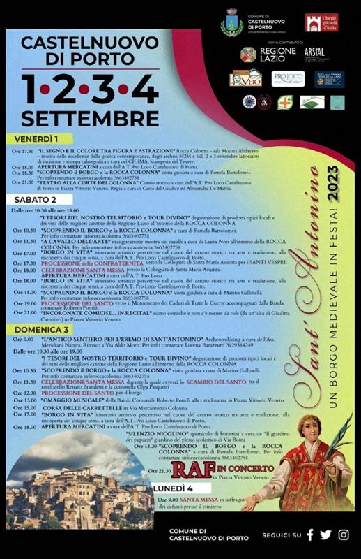 Festa Patronale di Sant’Antonino a Castelnuovo di Porto ... un Borgo Medievale in Festa dal 01 al 3 Settembre 2023.