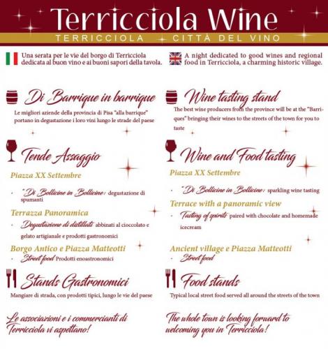 Una serata per le vie del borgo di Terricciola, dedicata al buon vino e ai buoni sapori della tavola, spettacoli e musica.