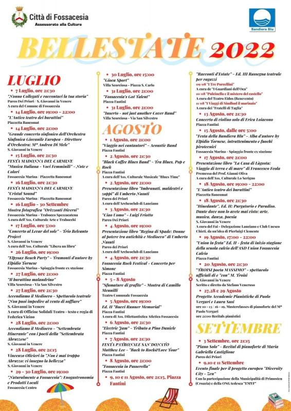 Fossacesia Estate 2022. Di seguito si può il Calendario degli eventi estivi a Fossacesia (CH) da luglio a settembre 2022