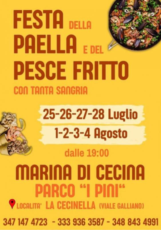 Festa della paella e del Pesce Fritto 5, 26, 27, 28 Luglio e 1, 2, 3, 4 Agosto 2024 dalle ore 19