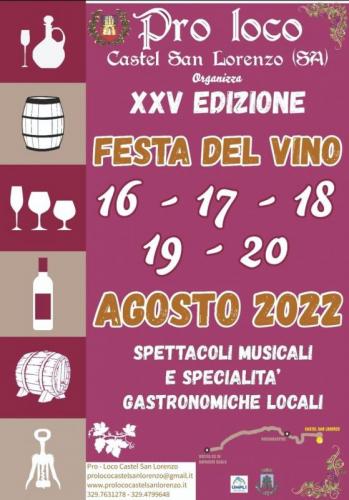 Dal 16 al 20 Agosto 2022 si terrà a Castel San Lorenzo la Festa del Vino, cinque giorni con musica e altre specialità gastronomiche organizzati dalla Pro Loco Castel San Lorenzo.