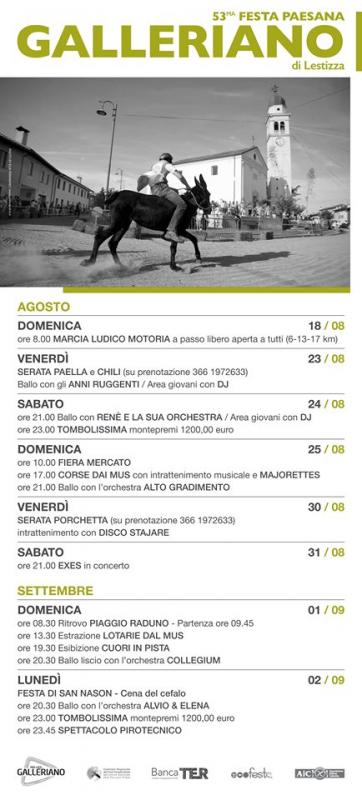52° Festa Paesana di Galleriano di Lestizza dal 18 Agosto al 2 settembre 2019.