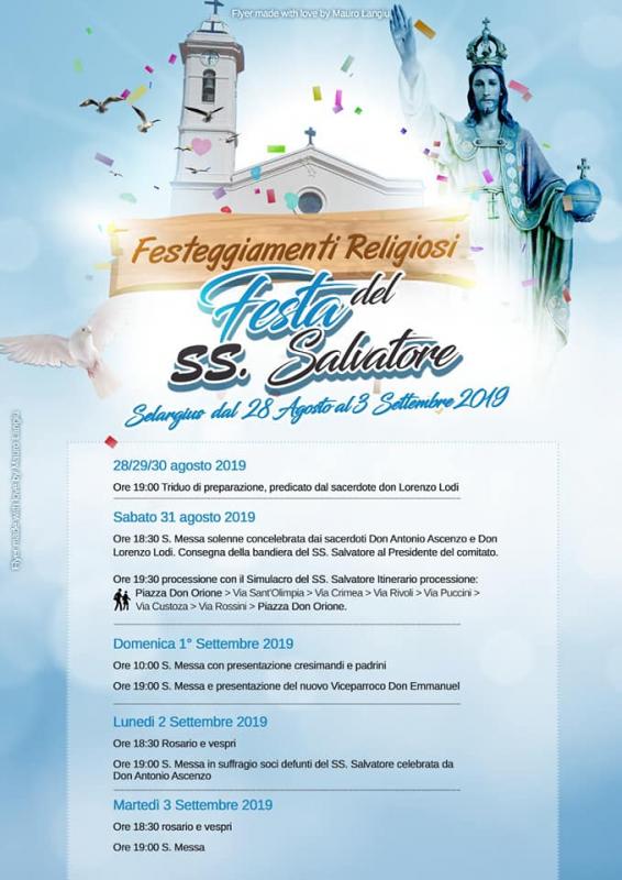 A Selargius in provincia di Cagliari si svolgono nei giorni dal 28 Agosto al 03 Settembre 2019 i Festeggiamenti in Onore del SS. Salvatore.