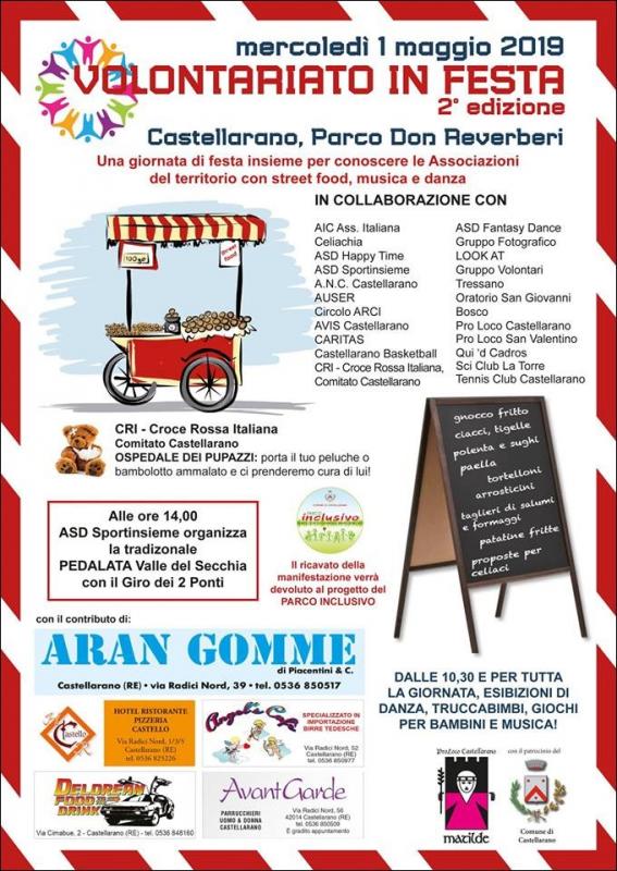 MERCOLEDI' 01 MAGGIO 2019 vi attende un appuntamento IMPORTANTE!! Tutti insieme al Piazzale Cairoli per un classico delle nostre feste: GRATUITAMENTE e GIOIOSAMENTE insieme per condividere: gnocco fritto, polenta, tigelle, rosticini, patatine fritte, PAELLA, torte, piatti dedicati a chi soffre di intolleranze ed anche palloncini, truccabimbi, balli e musica, fotografie per ricordare la giornata, visite al nostro centro storico. Il tutto per raccogliere fondi per la realizzazione del progetto del PARCO INCLUSIVO per i nostri bimbi.