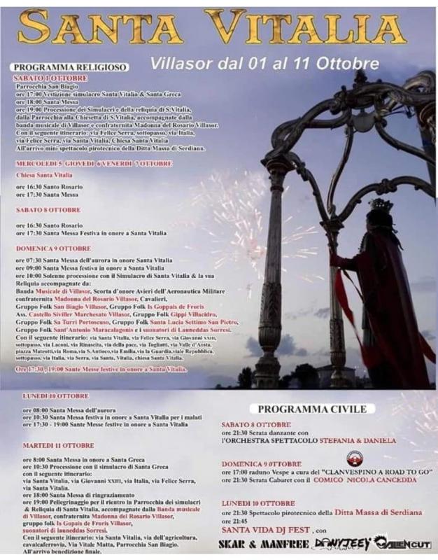 A Villasor in provincia di Cagliari si svolge nei giorni dal 1 al 11 Ottobre 2022 la Festa di Santa Vitalia Vergine e Martire.