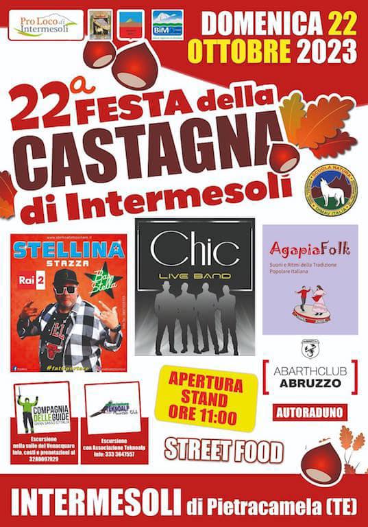 Pro Loco di Intermesoli vi aspetta domenica 22 Ottobre 2023 ad Intermesoli di Pietracamela (Teramo) per la Festa della castagna dove si gustano le castagne locali.