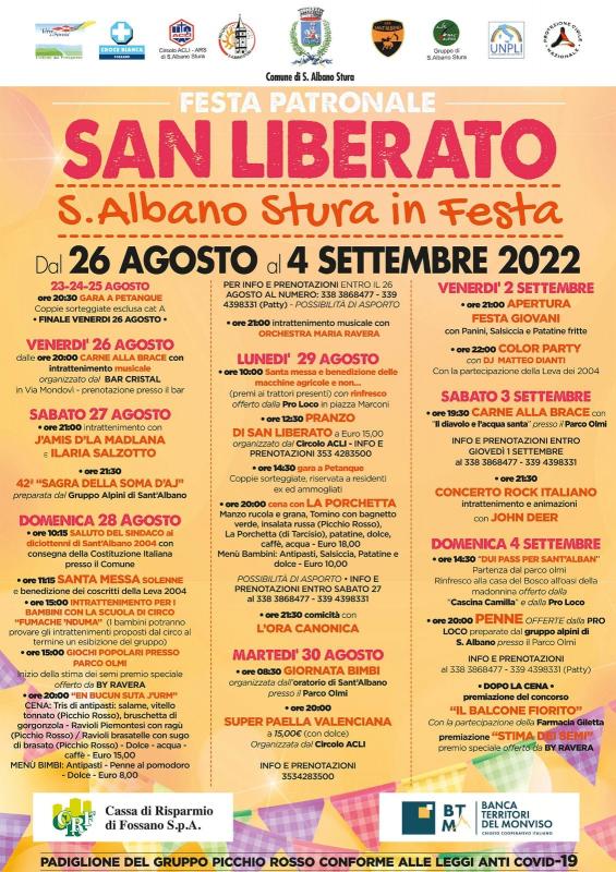 Festa Patronale di San Liberato a Sant'albano Stura dal 26 agosto al 4 settembre 2022