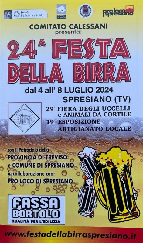 Festa della Birra di Spresiano-Calessani, in provincia di Treviso dal 4 al 8 Luglio 2024 , in contenoranea si svolgera la fiera degli uccelli e animali da cortile e l'esposizione dell'artigianato locale