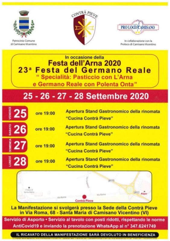 ,Sagra Del Germano Reale A Camisano Vicentino il 25 al 28 settembre 2020 torna la rinomata FESTA DELL'ARNA e DEL GERMANO REALE presso la sede della Contrà Pieve in via Roma C a S. Maria.