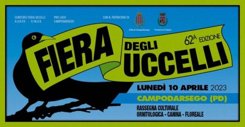 A Campodarsego in provincia di Padova si svolge nella giornata di Lunedì 10 Aprile 2023, dalle ore 08.00 alle ore 18.00, la 62a edizione della Fiera degli Uccelli e la Fiera dell'Angelo.