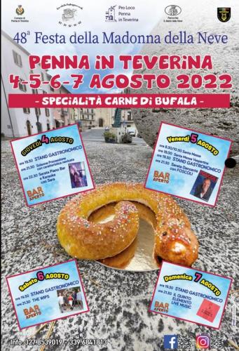 Festa della Madonna della Neve a Penna in Teverina dal 4 al 7 Agosto 2022 e la sagra del tortiglione a penna teverina