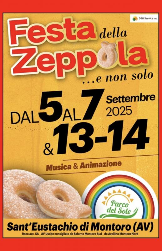 E’ una festa interamente dedicata ad una antica tradizione montorese sulla preparazione delle zeppole che si svolgerà presso il Parco del Sole alla Frazione S. Eustachio di Montoro (AV) dal 5 al 7 settembre e dal 13 settembre al 14 settembre 2025.