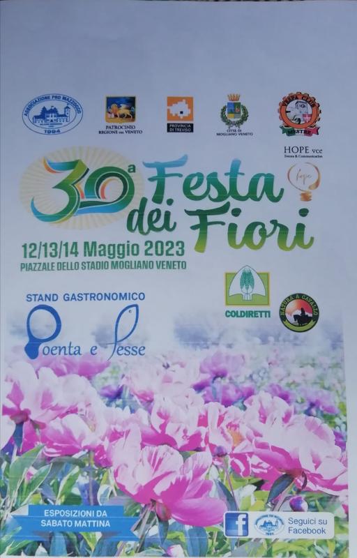 L'Associazione Pro-Mazzocco invita il 12-13-14 maggio 2023 a Mogliano Veneto per la tradizionale Festa dei Fiori, la fiera dedicata al florovivaismo che si svolge nel parcheggio dello stadio comunale.