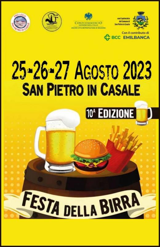 La Festa della Birra di San Pietro in Casale torna nel 2023 con la X Edizione. Da Venerdì 25 a Domenica 27 Agosto il centro storico sarà occupato dagli stand gastronomici e punti ristoro a tema, con specialità locali, internazionali e bavaresi e ovviamente tanta birra. In Piazza Martiri della Libertà troveranno spazio i "Giochi di una volta" a cura dell'associazione Nobiltà e Contado di Pistoia.