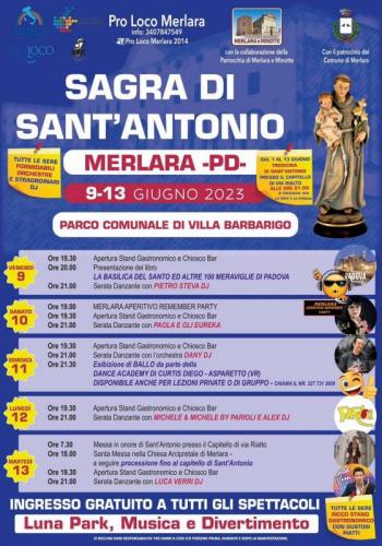 A Merlara in provincia di Padova si svolge nei giorni dal 12 al 17 Giugno 2024 la Sagra di Sant'Antonio.