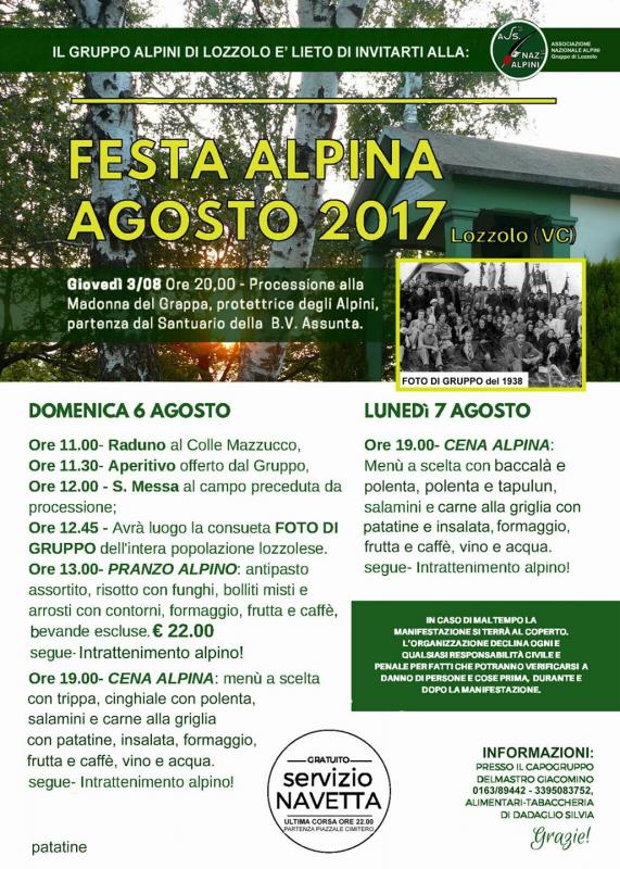 Il 6 e 7 agosto 2017 a Lozzolo si svolge la Festa Alpina.