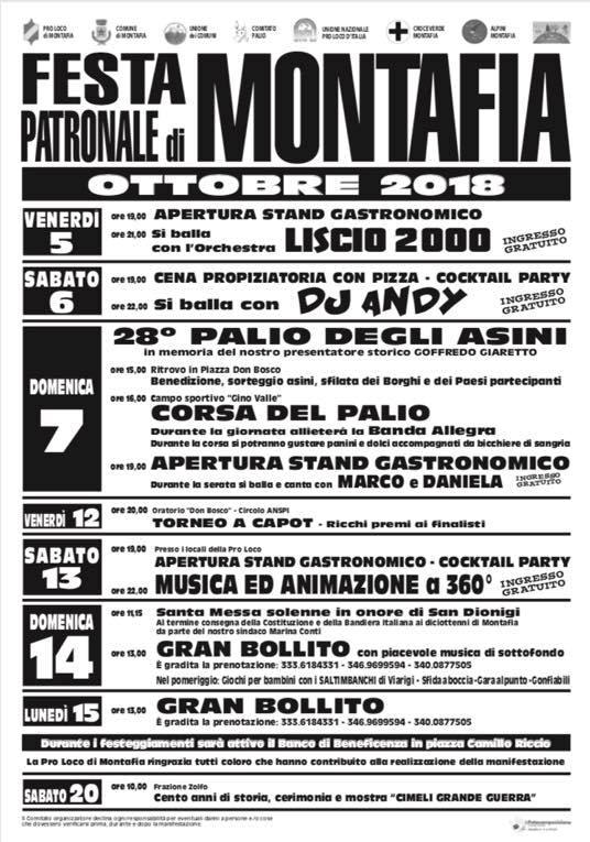 Dal 5 al 15 ottobre 2018 si svolgono gli eventi di Montafia in Festa.