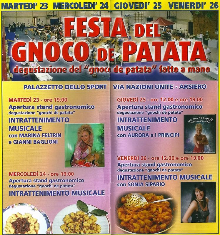 Dal 23 al 26 agosto 2016 ad Arsiero (VI) torna la Festa Del Gnoco De Patata con gli gnochi di patate fatti a mano come una volta.