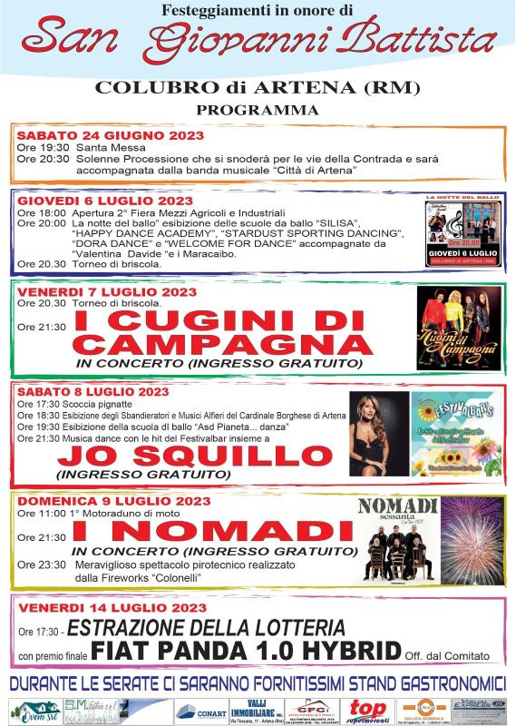 Diniego di responsabilià: le notizie riportate in questa pagina sono state fornite da Enti Pubblici e Privati e, organizzazione eventi e sagre, fiere. Suggeriamo di verificare date, orari e programmi che potrebbero variare, contattando le organizzazioni o visitando il sito ufficiale dell'evento.