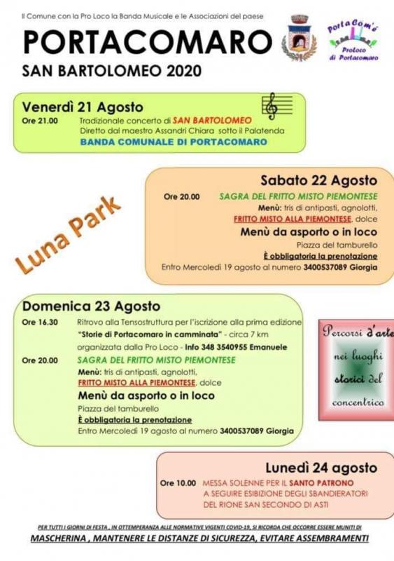 La Festa Patronale Di San Bartolomeo a Portacomaro (AT) si svolge quest'anno dal 21 al 24 Agosto 2022.