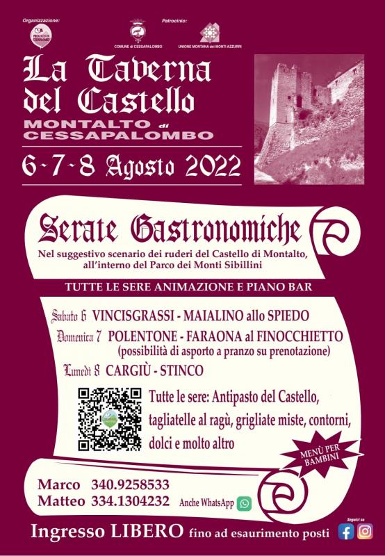 La Taverna del Castello dal 06 al 8 agosto 2022 a Montalto di Cessapalombo (MC):