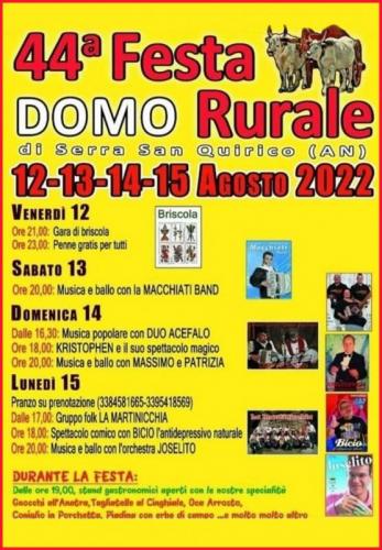 A Domo, frazione del Comune di Serra San Quirico in provincia di Ancona si svolge nei giorni 12, 13, 14, 15 Agosto 2022 la 44a edizione della Festa Rurale.