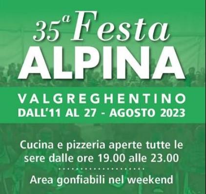 A Valgreghentino in provincia di Lecco si svolge nei giorni dal 11 al 27 Agosto 2023 la 35a edizione della Festa Alpina in Oratorio, organizzata dai Picett del Grenta e dagli Alpini di Valgreghentino.